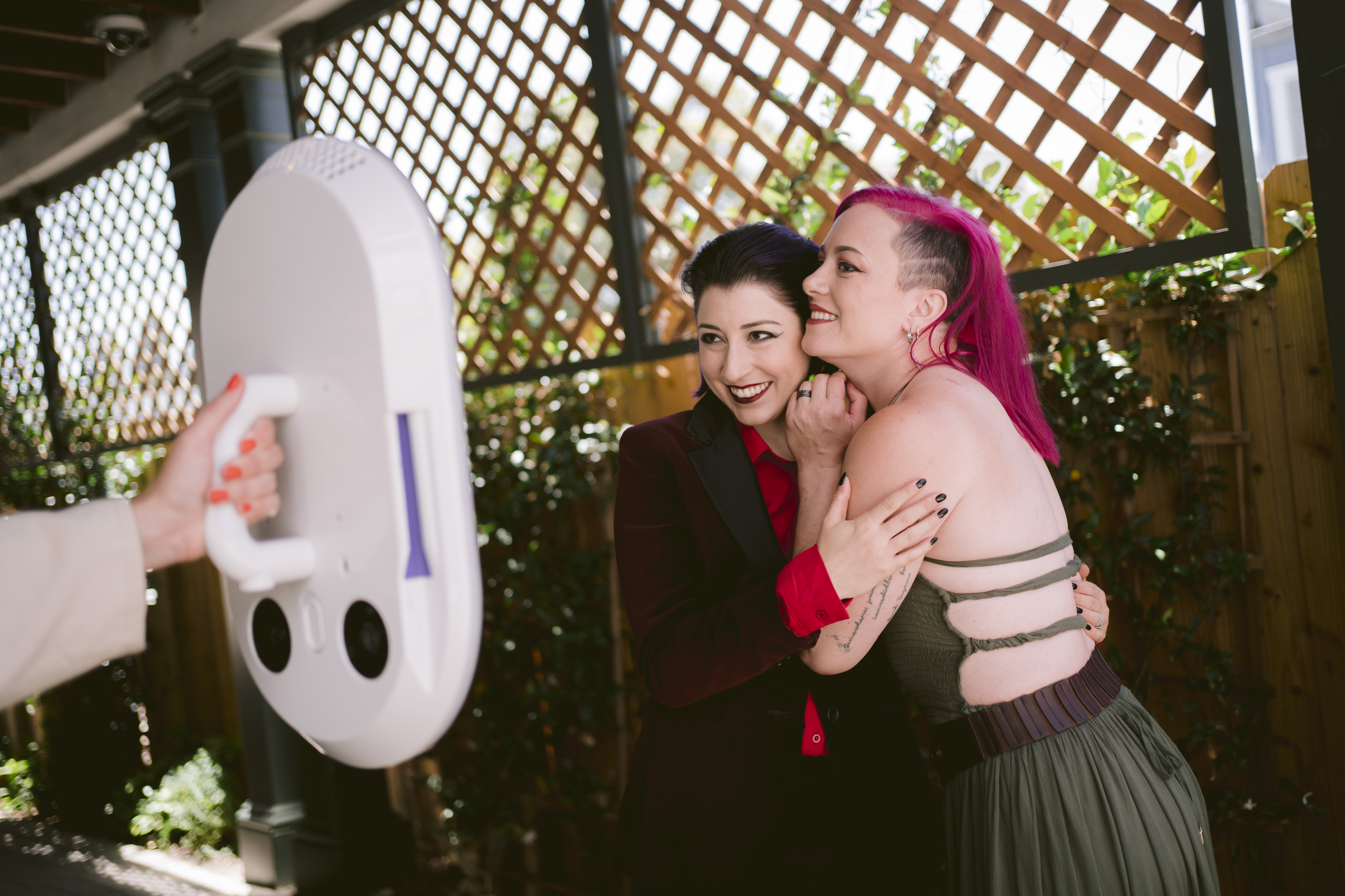 This digital booth travels around your party, event, or wedding and uses your beautiful venue as the backdrop. Battery powered, no setup footprint, goes anywhere.
